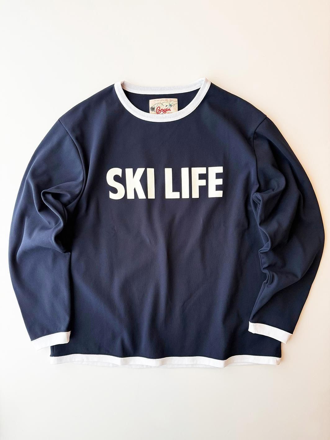 大好評、化繊「SKI LIFE」のロングスリーブ。ハリがあってしっかりとした速乾生地が心地よい。ボーゲンらしいゆったりした着心地。