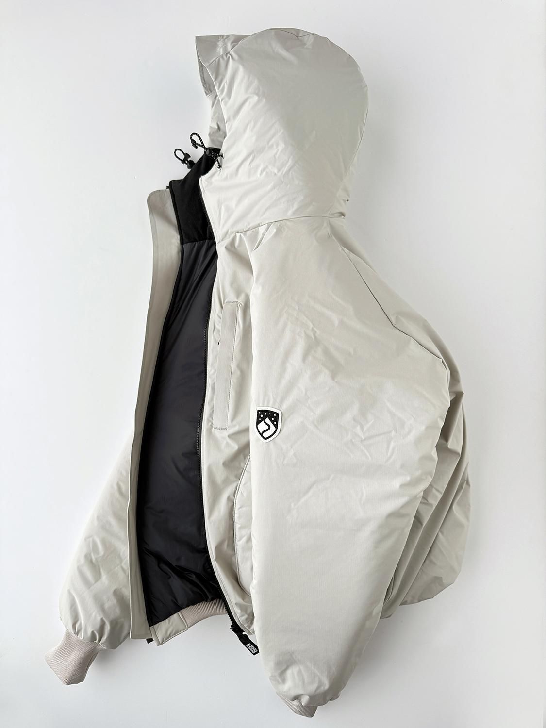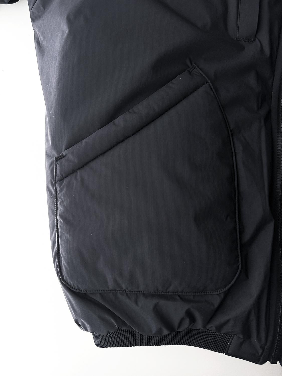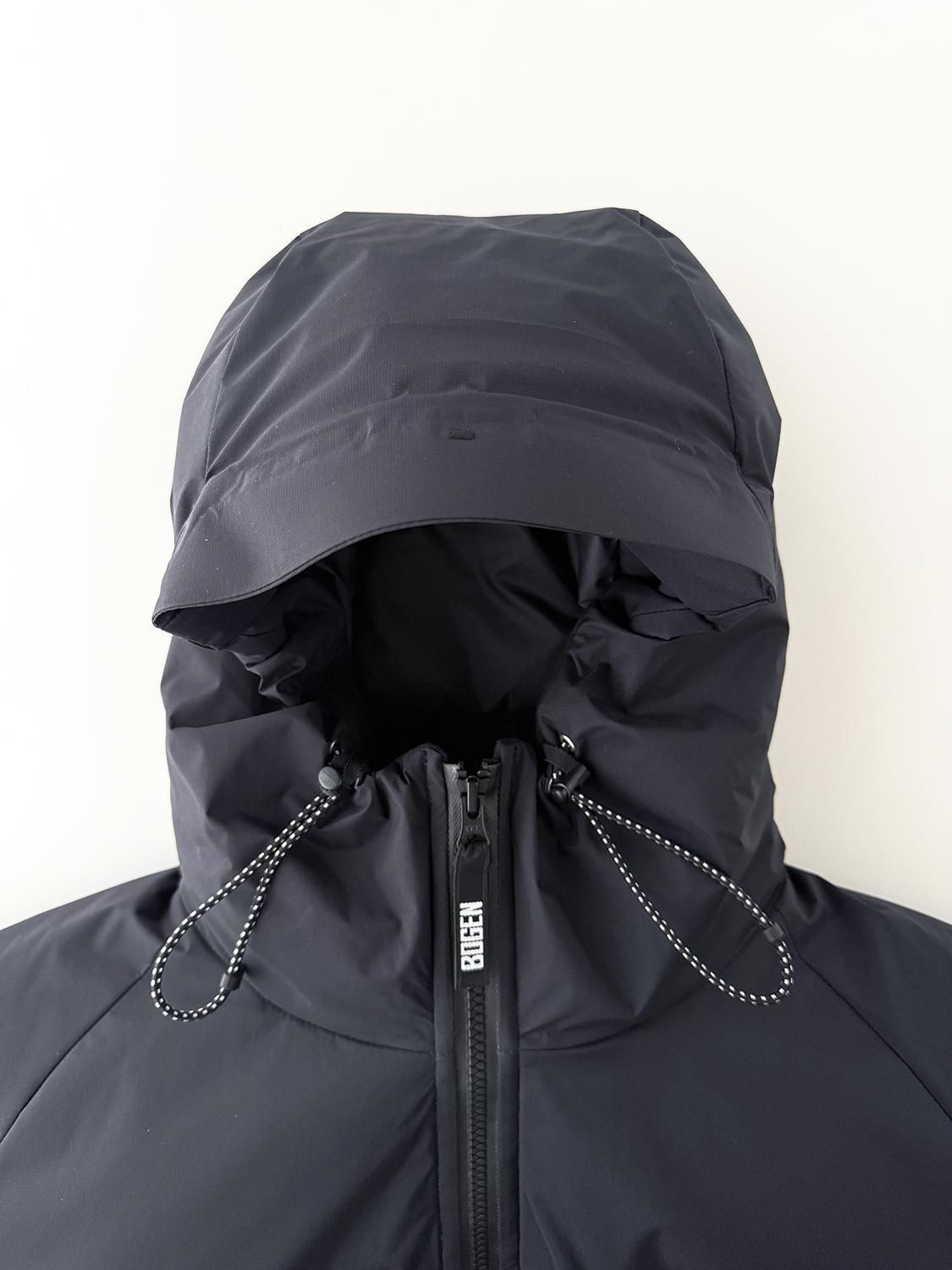 見た目のボリューム感からは想像できない軽さ、ダウン並のロフト感。高機能化繊綿をとても薄くてパリッとした耐水透湿3層生地でくるんだジャケットだから、扱いも楽でもちろんあたたかい。濡れるのも気にしない。裾のリブを短くしたのでコロンと丸いシルエットができあがる。街から山へ、飛行機に乗って雪国へ、これからの移動着の定番にしたい。